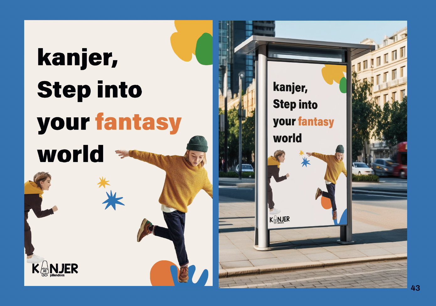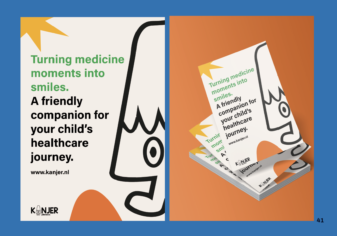 Voor mijn specialisatie Branding & Campaign Design heb ik het merk Kanjer ontwikkeld. Dit project gaf mij de mogelijkheid om een eigen merk te bedenken en uit te werken. Ik wilde iets ontwerpen dat niet alleen commercieel aantrekkelijk is, maar ook écht iets betekent voor de doelgroep. Daarom richtte ik me op een oplossing die kinderen met kanker helpt bij hun medicatie-inname. Dit concept heb ik later verder uitgewerkt binnen het vak Entrepreneurship, waarbij ik de zakelijke kant en de haalbaarheid van het merk onderzocht.