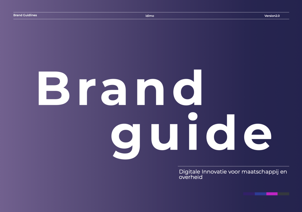 Om een sterke en herkenbare merkidentiteit te creëren, heb ik een uitgebreide brandguide ontwikkeld met richtlijnen voor logo, kleurgebruik, typografie en visuele elementen. Daarnaast ontwierp ik een professioneel logo en een informatieve brochure die de kernwaarden, visie en missie van Idimo samenvat. Deze materialen zorgen ervoor dat de minor een herkenbare uitstraling krijgt en effectief kan worden gepromoot.