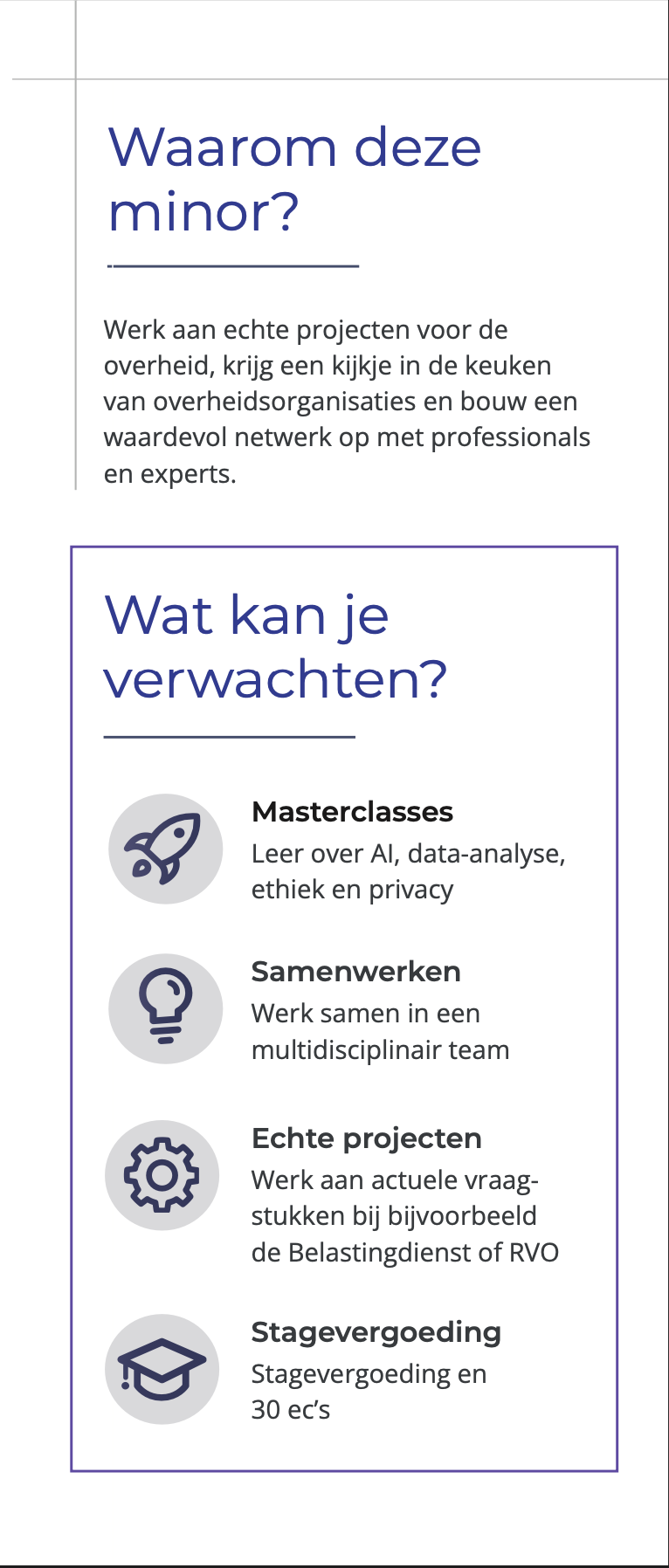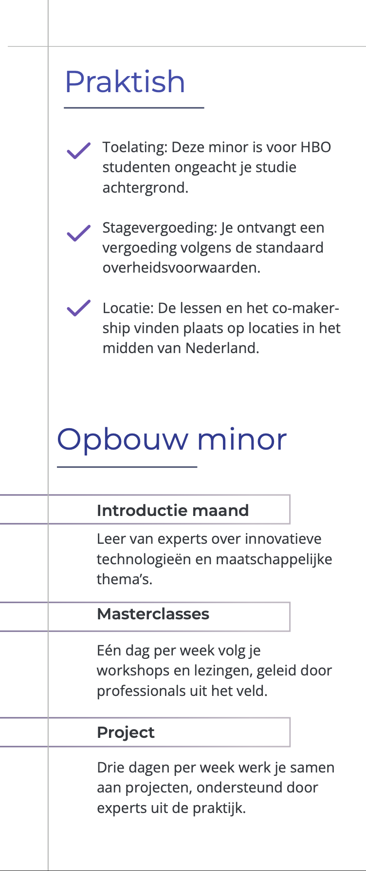 Mijn doel was om een merkidentiteit te creëren die niet alleen aansluit bij de visie van de minor, maar ook rekening houdt met verschillende stakeholders, zoals overheidsinstanties, hogescholen en studenten. Studenten spelen een grote rol binnen dit project, omdat zij uiteindelijk de minor moeten volgen. De branding moest hen op een duidelijke en aantrekkelijke manier informeren en enthousiasmeren.