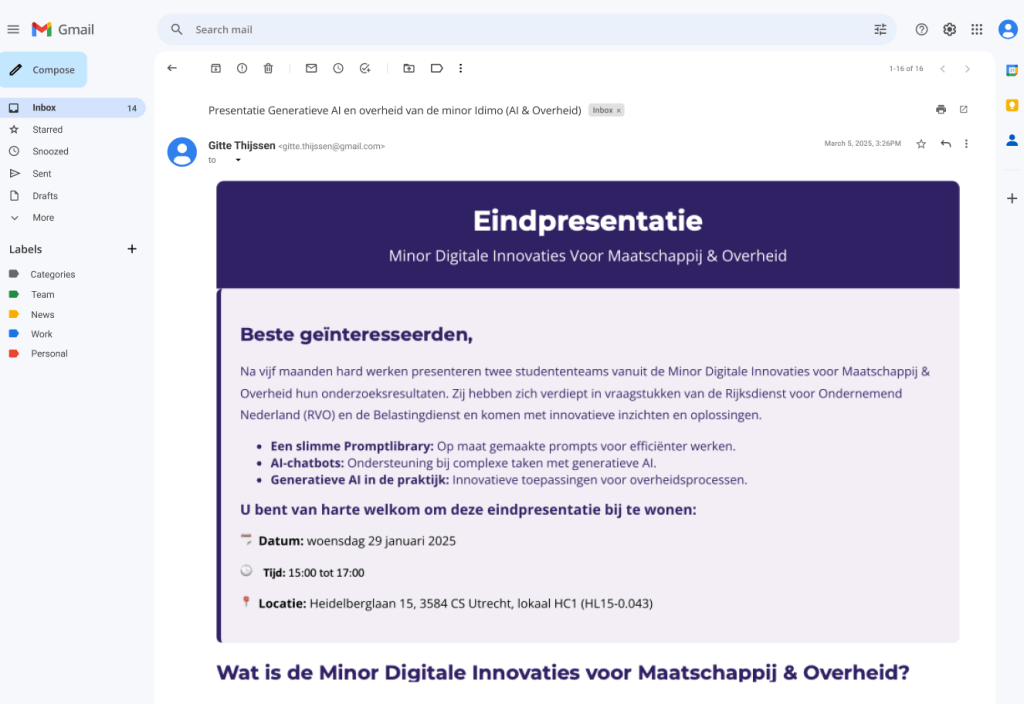 Naast het visuele aspect heb ik ook gewerkt aan de strategische positionering van Idimo. Dit betekent dat ik heb gekeken naar de tone-of-voice en de manier waarop Idimo zich presenteert aan verschillende doelgroepen. De branding moest formeel en professioneel genoeg zijn om aan te sluiten bij overheidsinstanties, maar ook laagdrempelig en inspirerend om studenten aan te spreken